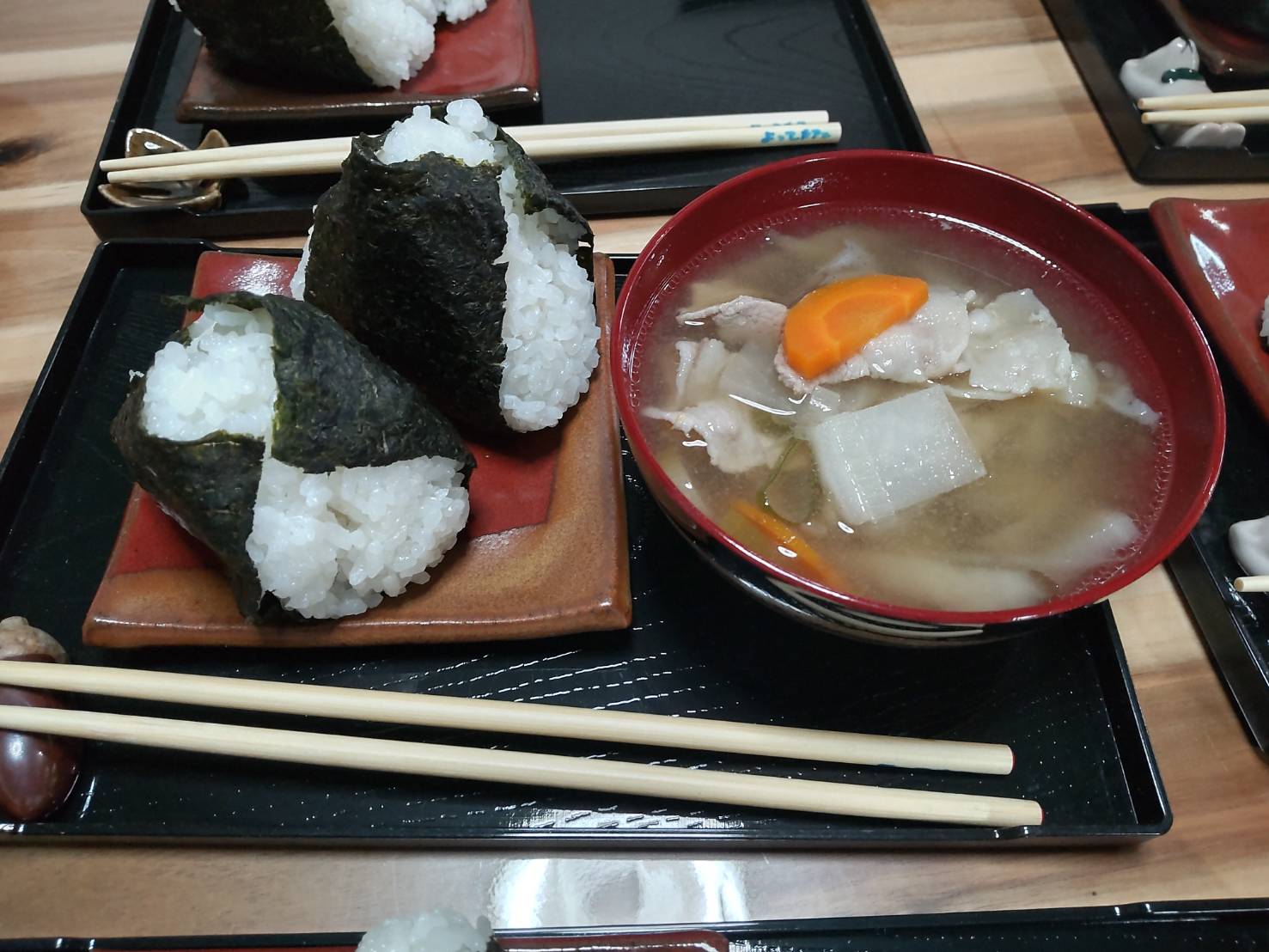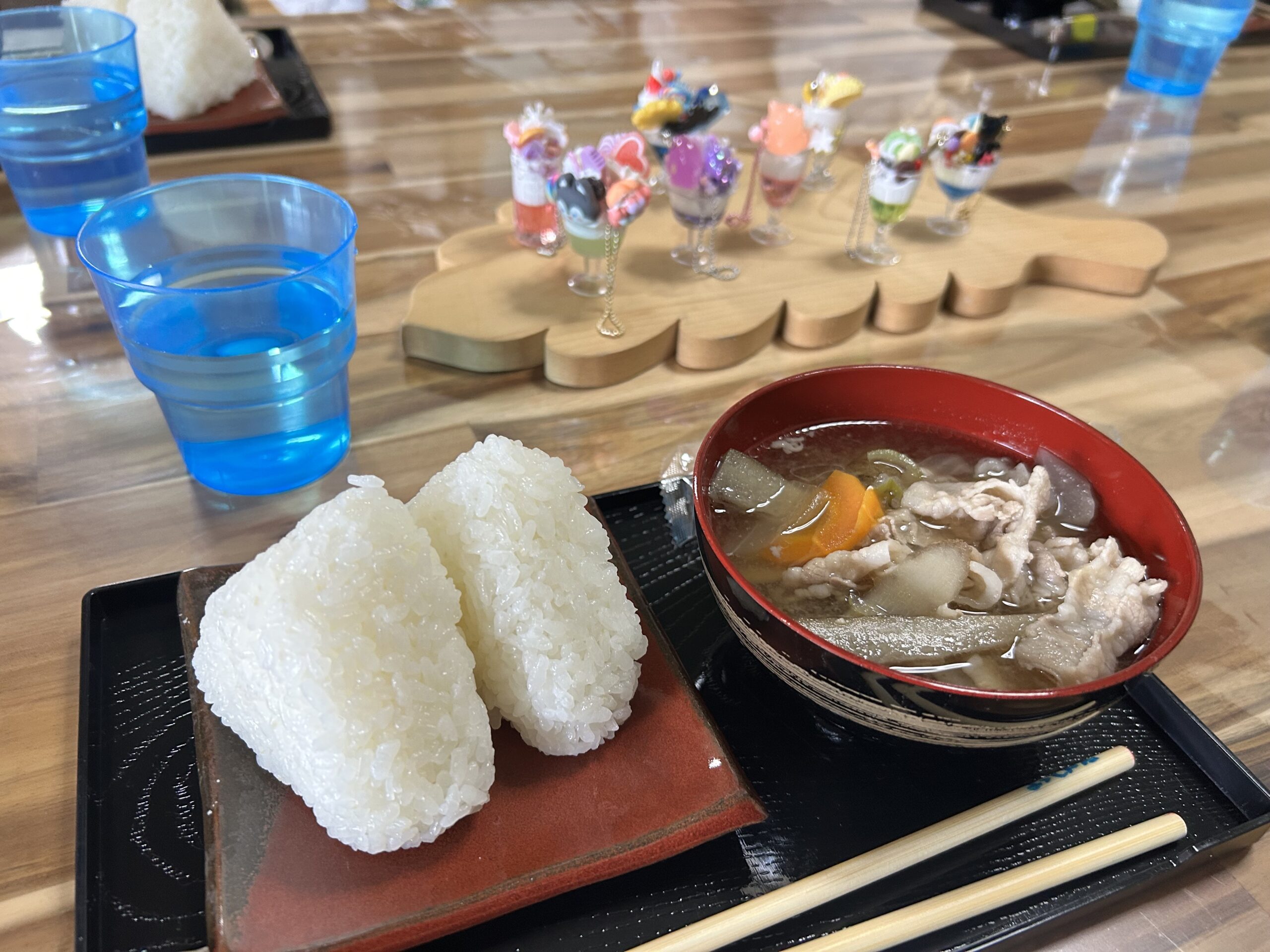 おにぎりと豚汁をワンコイン500円で提供しています。
